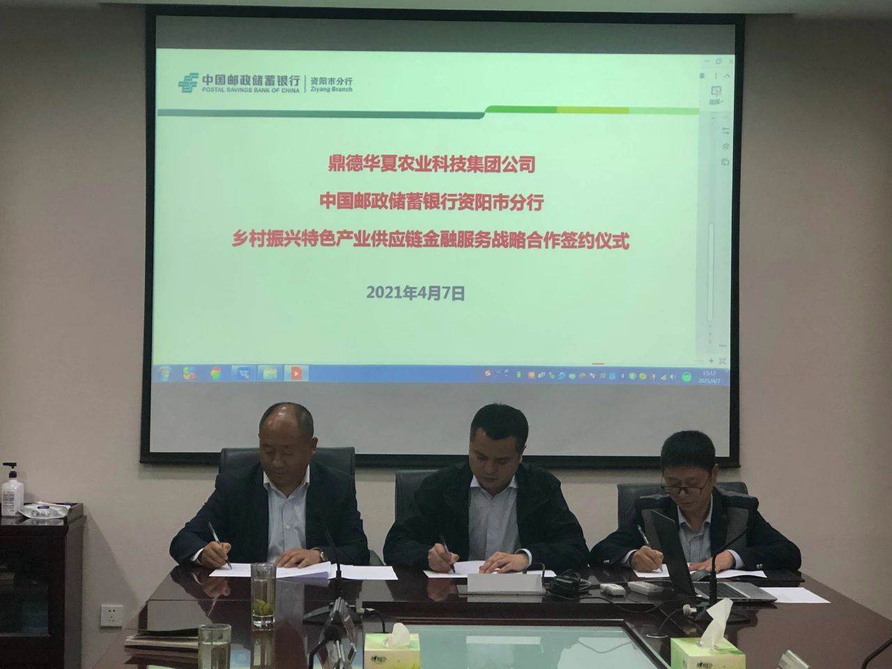 2021年4月7日,經(jīng)過前期多次實地調(diào)研及反復(fù)協(xié)商探討,鼎德華夏與中國郵政儲蓄銀行資陽分行正式簽署鄉(xiāng)村振興特色產(chǎn)業(yè)供應(yīng)鏈金融服務(wù)戰(zhàn)略合作協(xié)議。雙方采取“核心企業(yè)1+N”的方式,為資陽鄉(xiāng)村振興全產(chǎn)業(yè)鏈中產(chǎn)前、產(chǎn)中及產(chǎn)后提供金融和技術(shù)支持服務(wù)。2021年起,鼎德華夏獲得資陽分行授信總額不低于1.5億元,主要用于水肥藥一體化系統(tǒng)安裝、綠色農(nóng)資生產(chǎn)與配送、特色農(nóng)產(chǎn)品采收加工與倉儲、品牌策劃與品牌營銷和智慧農(nóng)業(yè)物聯(lián)網(wǎng)體系建設(shè)等,將支持資陽鄉(xiāng)村振興特色產(chǎn)業(yè)客戶不低于300戶。